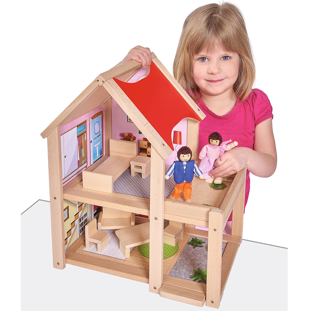 - Casuta din lemn pentru papusi este o jucarie din lemn ideala pentru fetite cu varsta de peste 3 ani