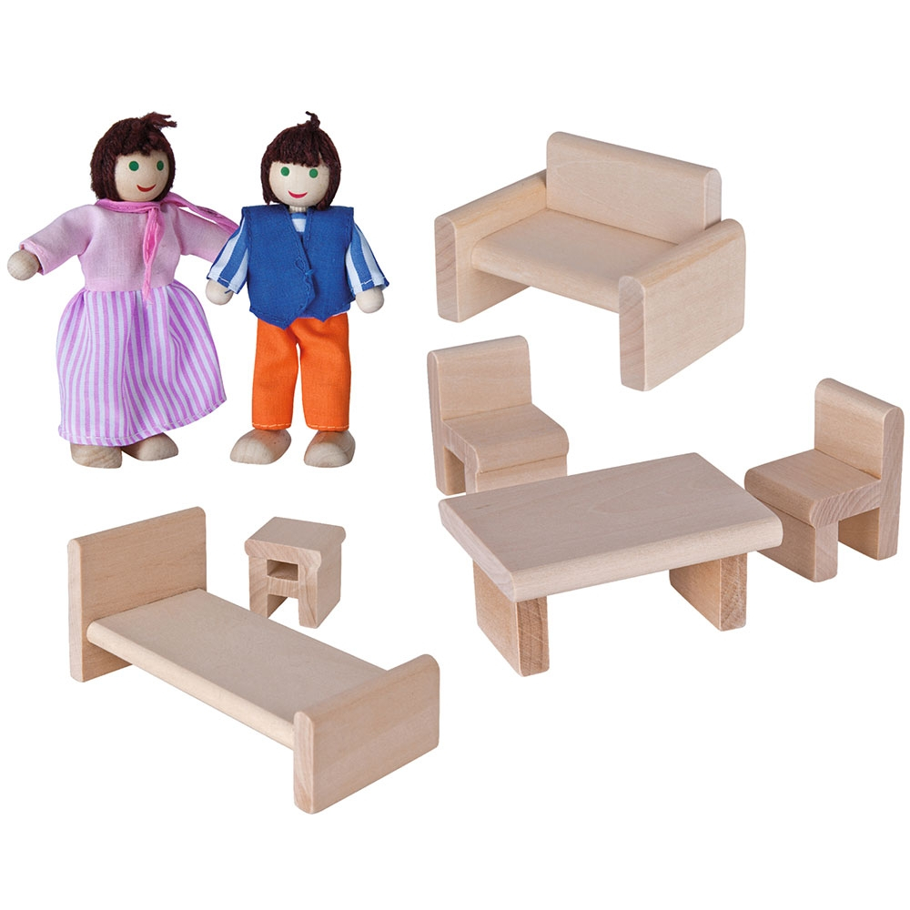 - Setul include 9 accesorii: o casuta din lemn utilata cu mobilier, precum si 2 papusi