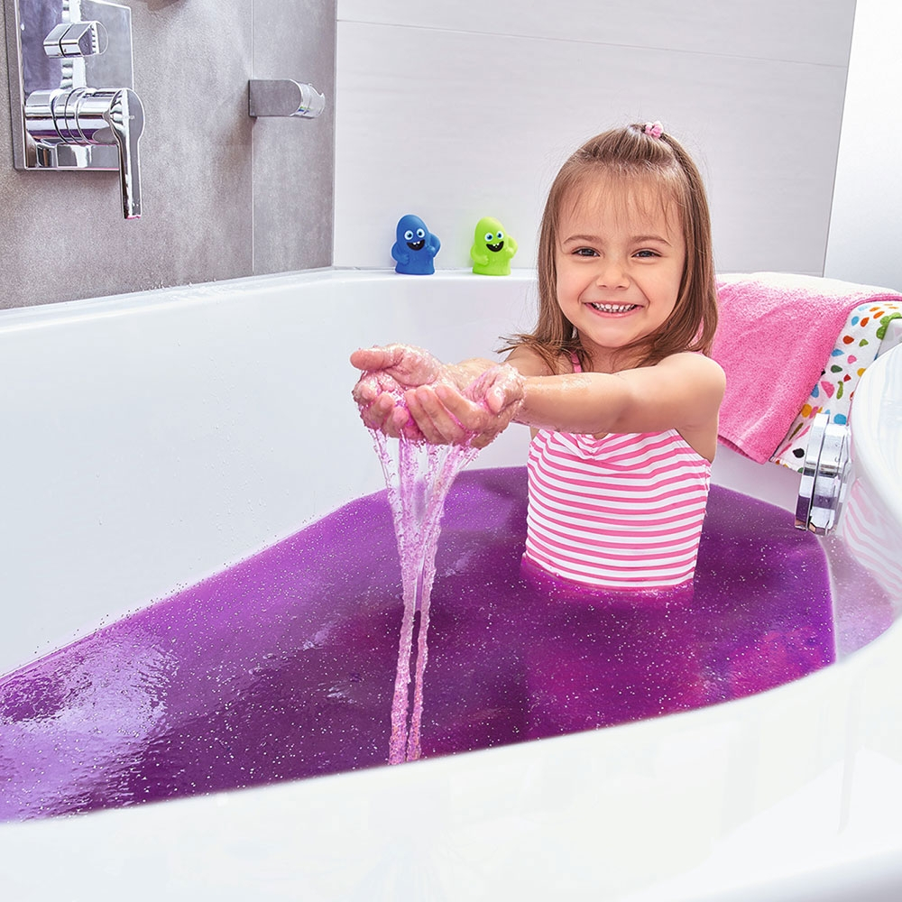 - Glibbi Glitter Slime contine un pachet de pulbere, care transforma apa in gelatina