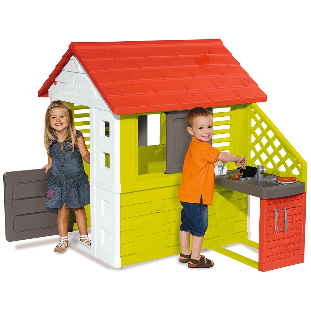 - Casuta pentru copii Smoby Nature cu bucatarie este un set compus din casuta Nature si bucatarie de vara, plus alte accesorii pentru bucatarie