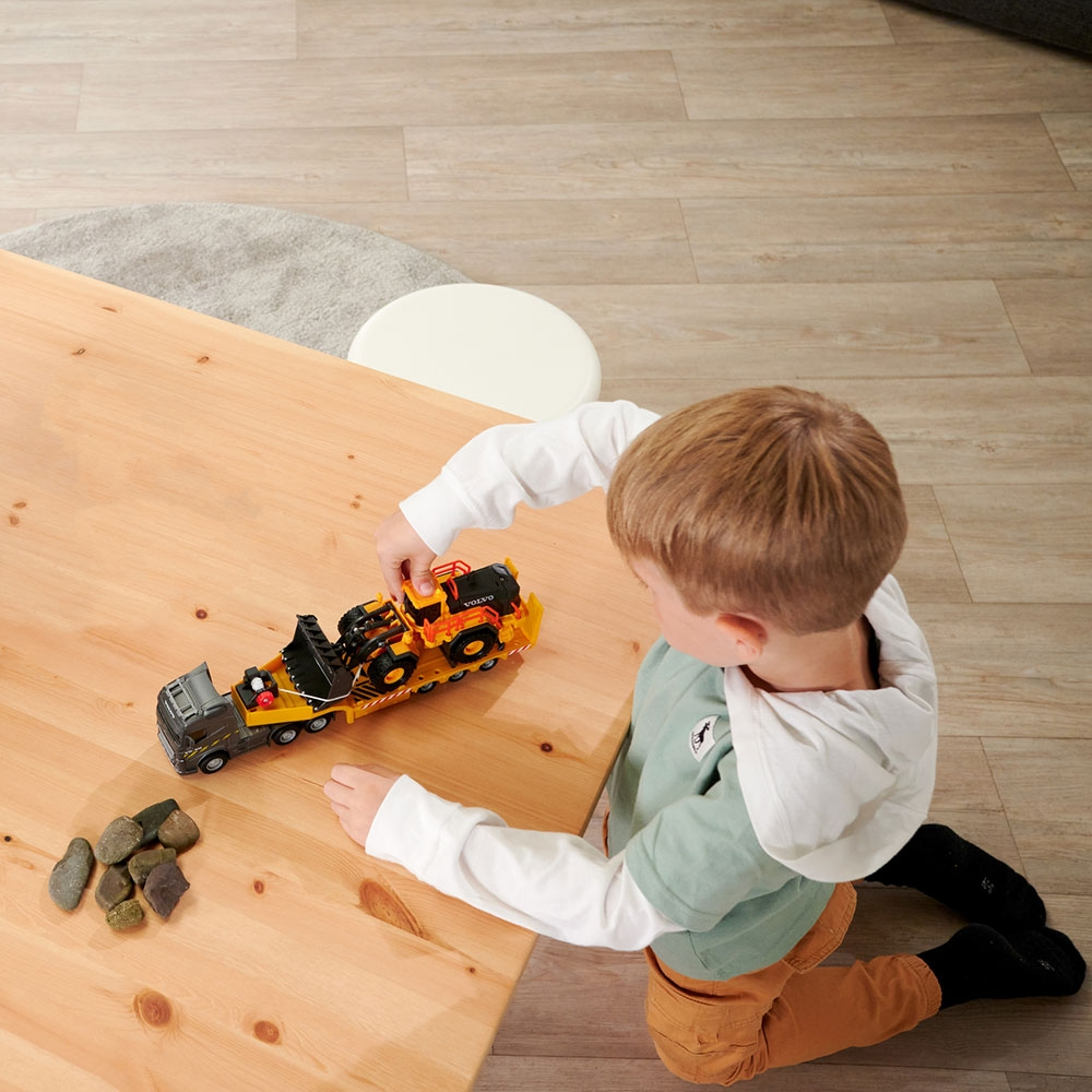 Detalii Camion Majorette Volvo cu remorca si buldozer