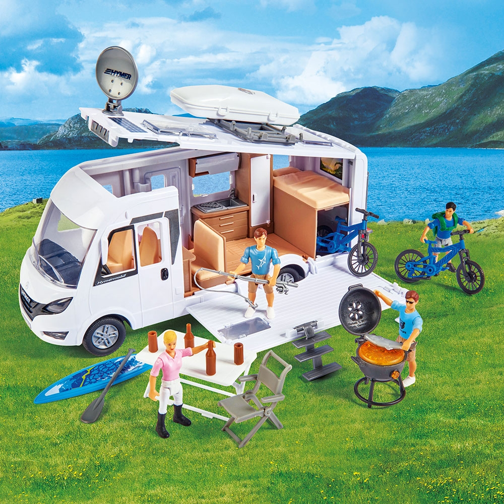 Detalii Rulota Dickie Toys Camper Hymer Camping Van Class B cu figurina si accesorii